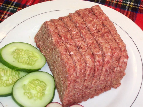 Scottish Lorne sausage sliced patties, made with Angus beef, Spices and sea salt Gluten free no preservatives.